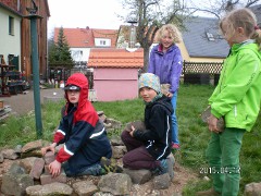 Viel Spaß hatten wir im April und Mai beim Bauen von den Hochbeeten, der Kräuterschnecke und dem Kompost. Gemeinsam ging die Arbeit gut von der Hand. Sehr viel Steine, Sand, Kompost und Erde wurde gebraucht und verbaut und viele Pflanzen fanden den Weg in die Erde. Nun wachsen viele verschiedene Kräuter, aber auch Tomaten, Zwiebeln, Kartoffeln, Erdbeeren, Kürbis, Zucchini, Kohlrabi, Radieschen und Bohnen. Wir freuen uns schon auf das Ernten.