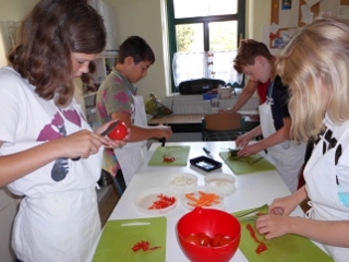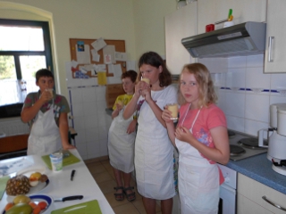 Mitten in den Ferien bei totaler Hitze fand unsere Kochkurswoche statt. Leider waren diesmal nur 4 Kinder/ Jugendliche dabei. Das war schade, aber Spaß gemacht hat es trotzdem. Sehr beliebt war natürlich das selbst gemachte Eis.