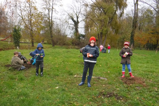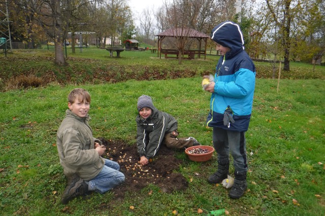 Auch wenn es kalt war und Nieselregen uns etwas ärgerte, viele fleißige Hände brachten 1200 Krokuszwiebeln und 1200 Blausternzwiebeln in die Erde. Im Bereich der neu gepflanzten Lutherlinde wird es also im Frühling bunt und es gibt Nahrung für viele Insekten.